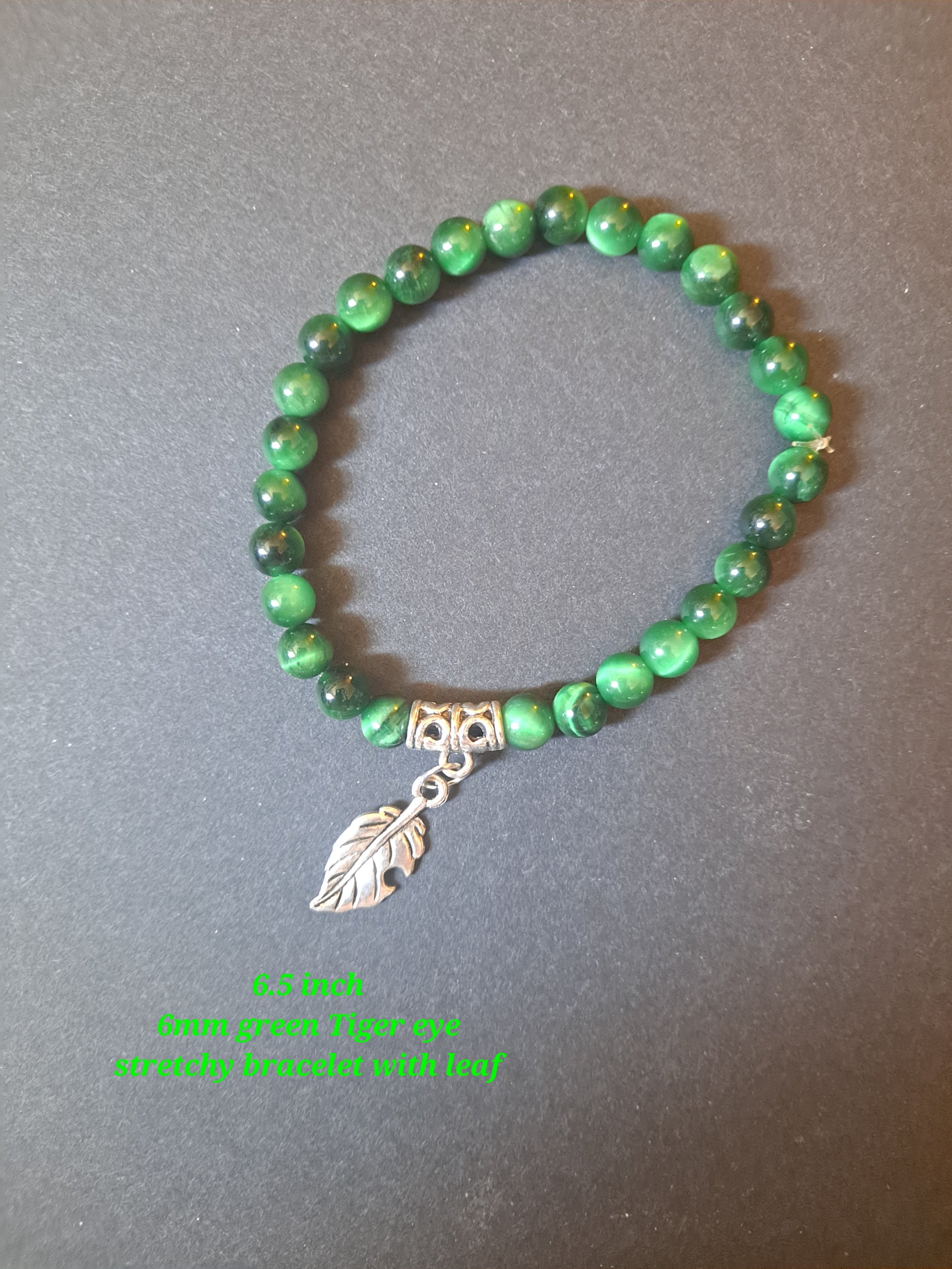 Green Tiger Eye with Leaf Bracelet